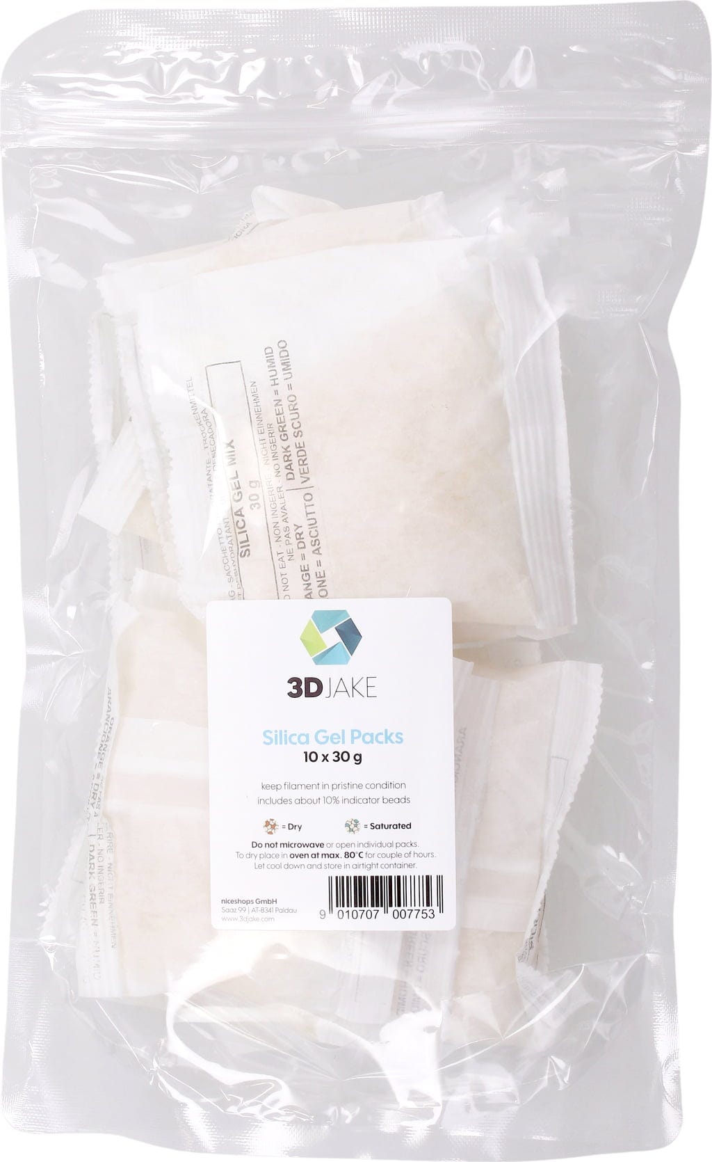 3DJAKE Silica Gel Tørremiddel, 10 x 30 g