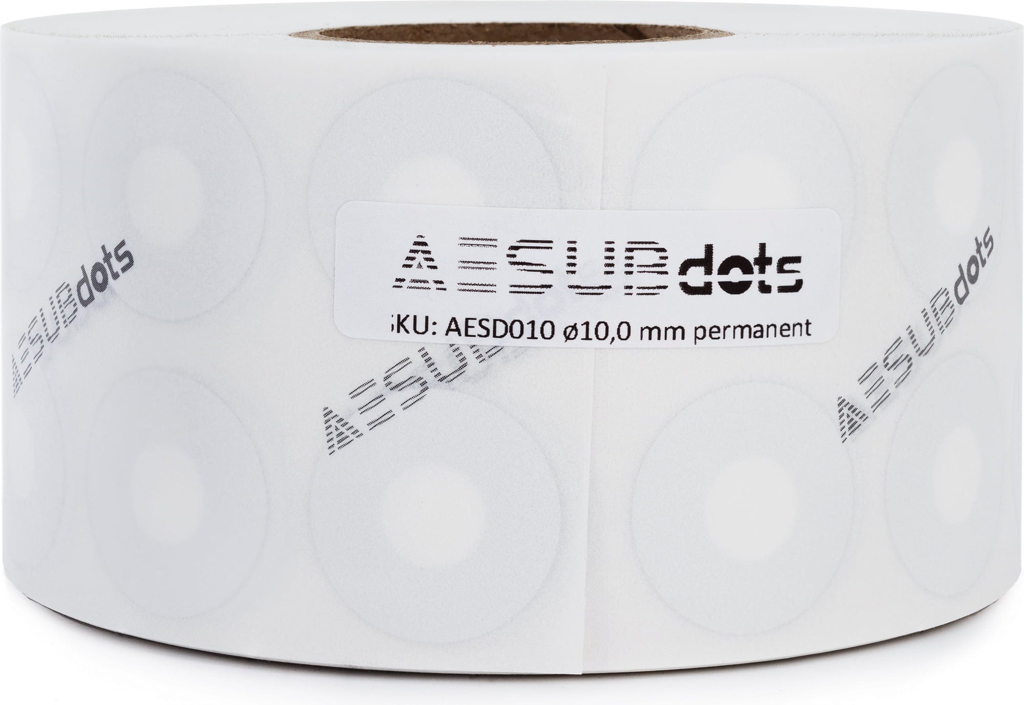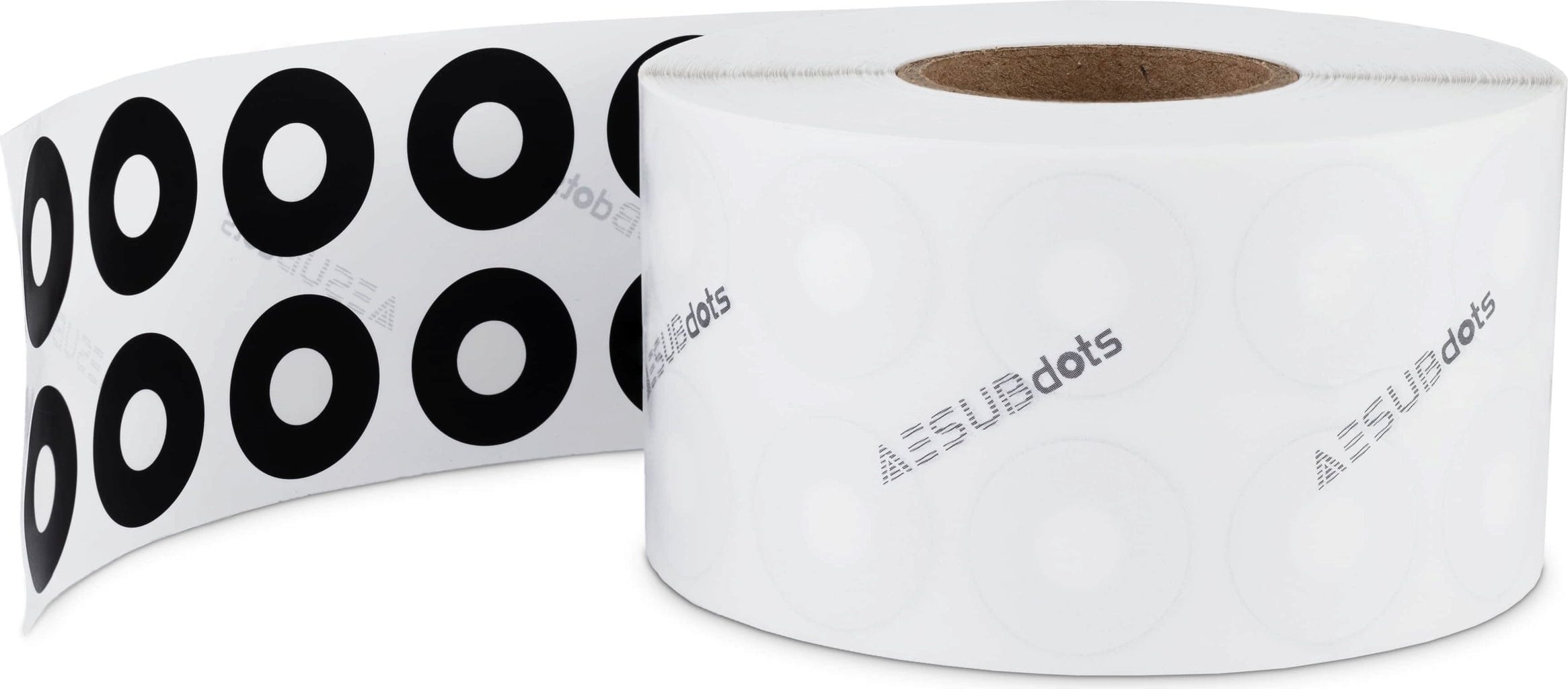 Dette er referansepunkter for 3D-strukturert lys skannere. De selvklebende AESUBdots har en sterkt klebende overflate og er rullet opp på en rull.