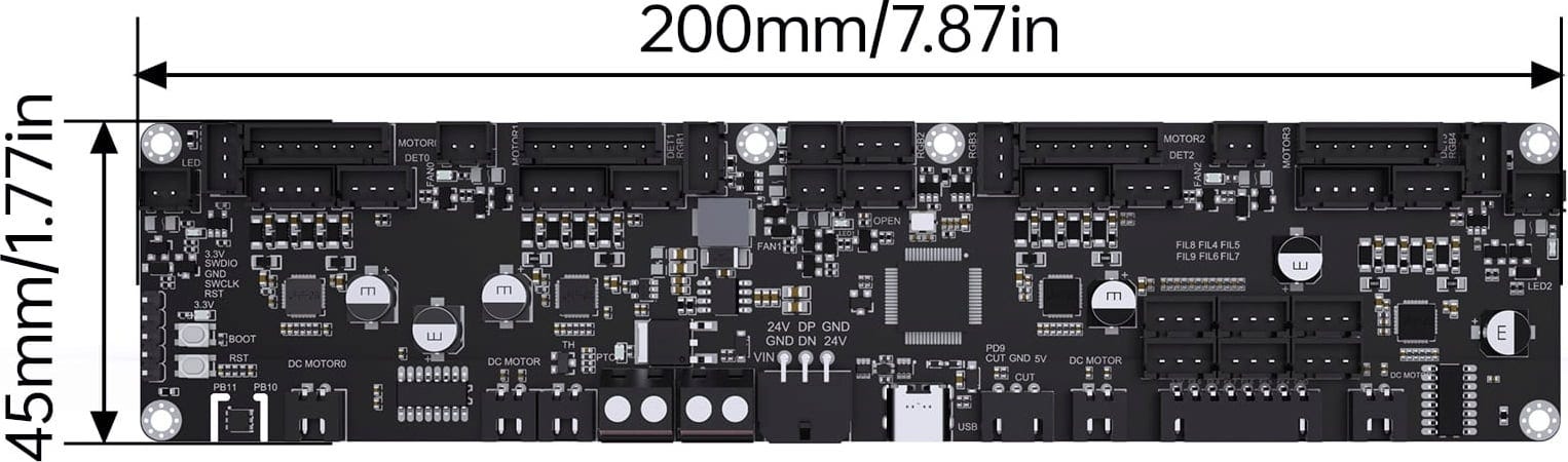 ► kraftige MOSFET-er: Støtter tilkobling av eksterne varmeenheter for aktiv filamentskålingssekking. Dette reduserer fuktighet, forhindrer tilstopping og øker utskriftssikkerheten.