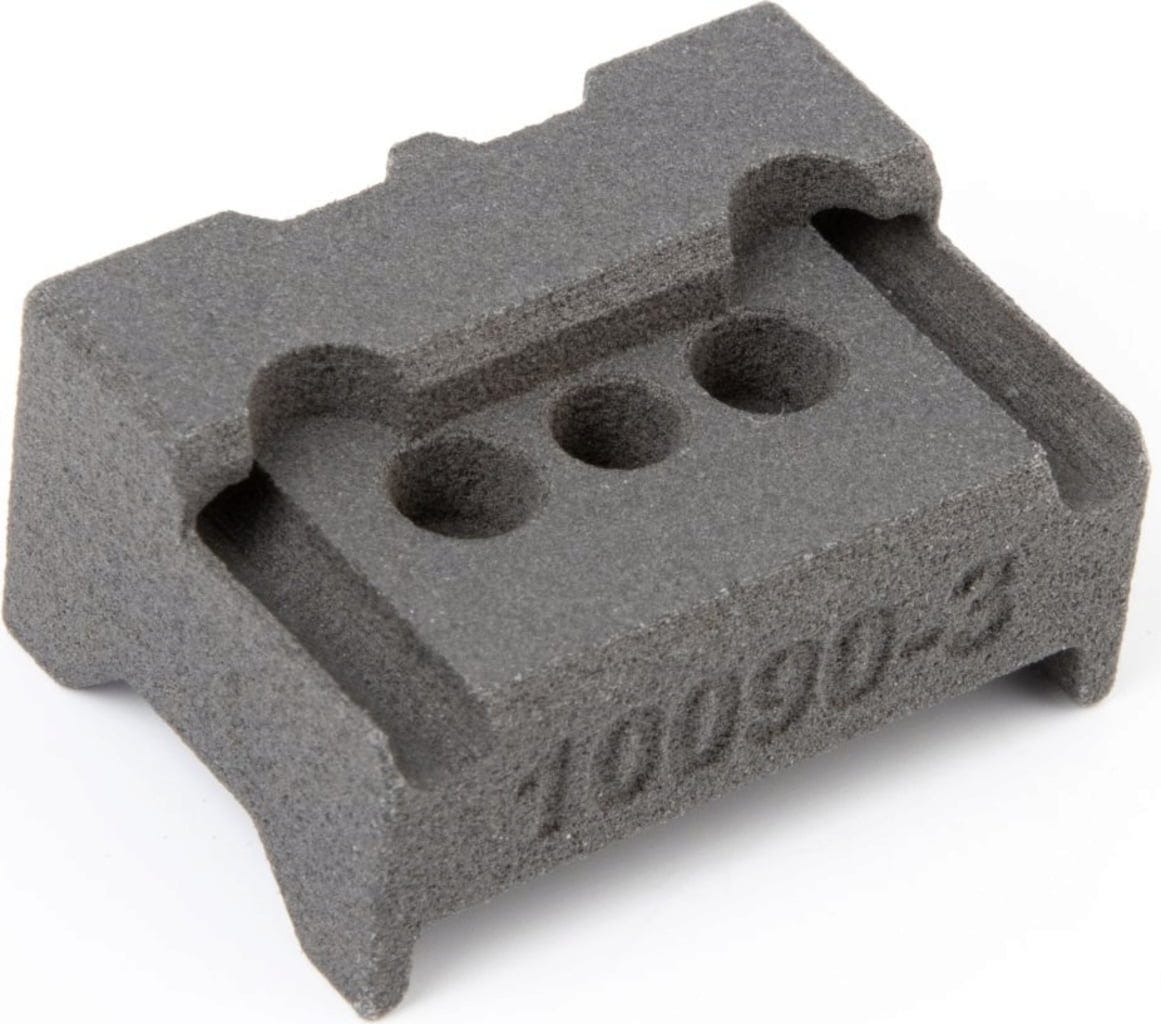 Plastdelen er laget av grå polyamid (PA12) uten farging med en beskyttende vokshinne.