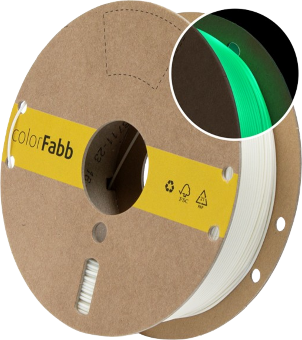 Spesielle høykonsentrerte fosforiserende pigmenter er blandet med PLA / PHA-filamentene fra colorfabb, noe som gjør det lett å printe.
