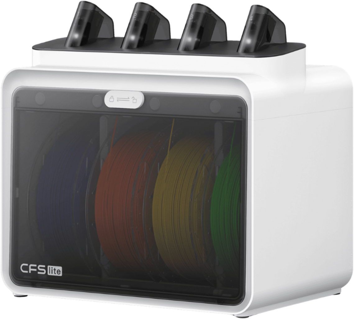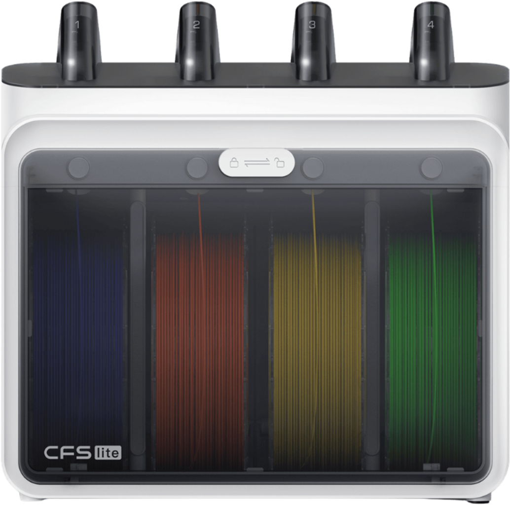 Systemet muliggjør bruk av flere filamenter og håndterer materialbytte automatisk under utskrift. Når et filament går tomt under print, bytter CFS Lite automatisk til en annen spole med identiske materialegenskaper. Dermed kan utskrifter fortsette uten avbrudd.