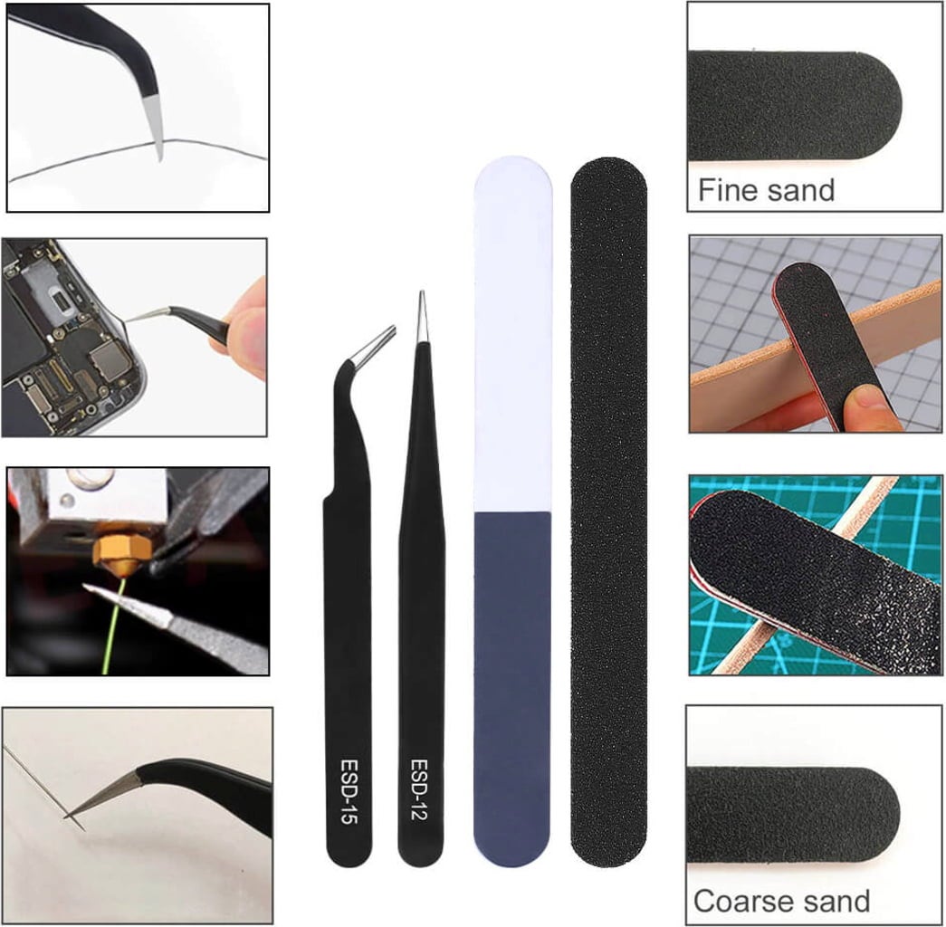 - Bøyd & rett pinsett for detaljert håndtering av de minste delene,