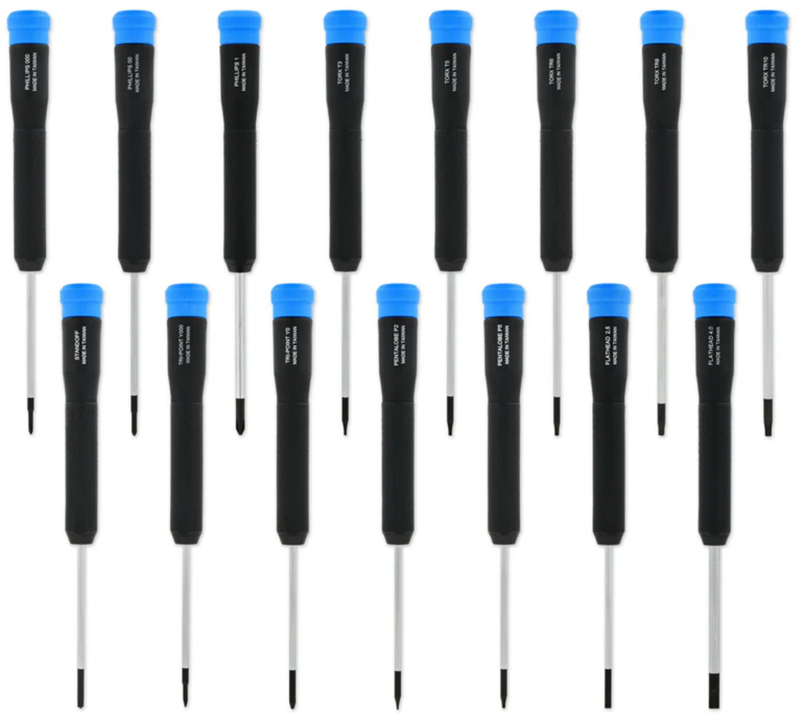 iFixit Marlin Screwdriver Set samler de 15 mest brukte skrutrekkerne med faste blader, slik at du er godt forberedt for å åpne og reparere nesten alle elektroniske enheter profesjonelt.