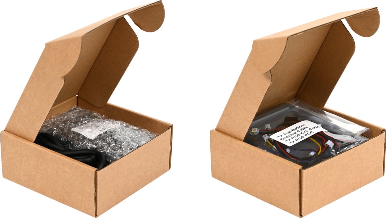 ► Merk: I den ferdigmonterte versjonen av denne ekstruderen er Printed Parts allerede inkludert i leveransen. For byggesettet må du skrive ut noen deler selv.