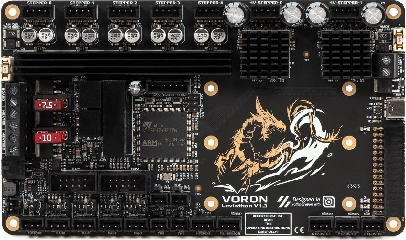 Leviathan V1.2 Control Board fra LDO Motors er et avansert 3D-printer kontrollkort spesielt utviklet for Voron CoreXY-printere. Designet av JNP – et mangeårig medlem av Voron-fellesskapet – kombinerer dette kortet maksimal ytelse med plassbesparende integrasjon og førsteklasses maskinvarekvalitet.