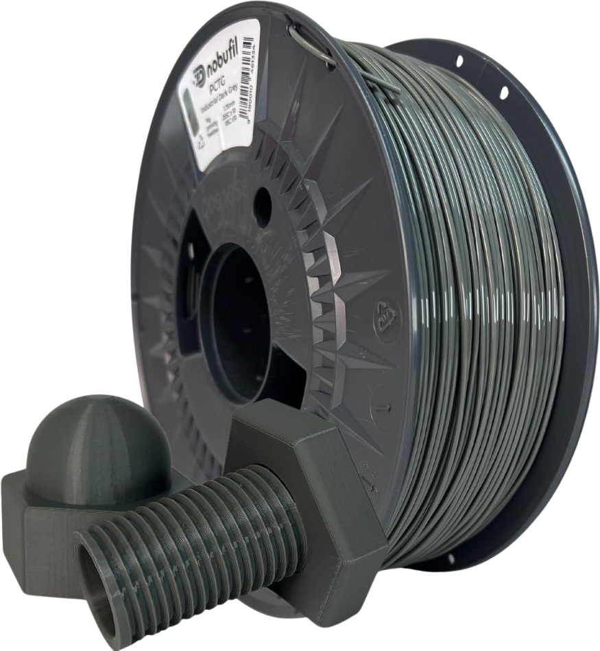 PCTG fra Nobufil er et filament laget av resirkulert plast som oppstår som produksjonsavfall i industriprosessering. Sammenlignet med PETG-filamenter, har dette polymeret en høyere slagfasthet, noe som gjør det egnet for produksjon av deler som utsettes for mekanisk belastning.