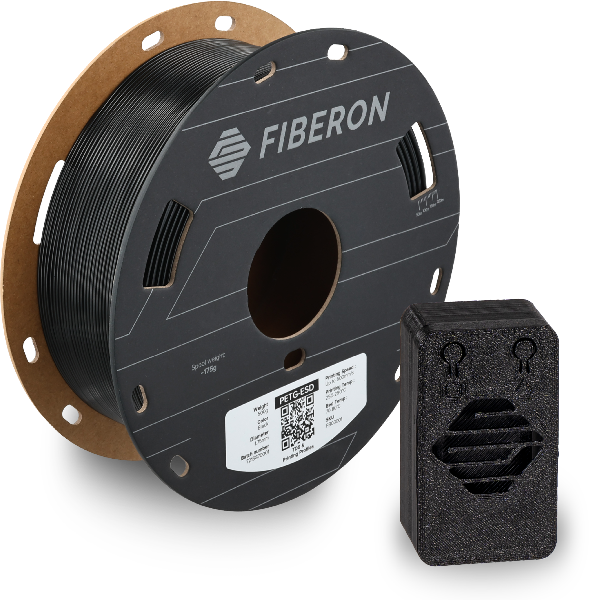 Med Polymaker Fiberon™ PETG-ESD får du et høyytelsesfilament som kombinerer holdbarhet og beskyttelse for dine elektronikkprosjekter. Gjennom målrettet tilsetning av karbon-nanorør, tilbyr dette PETG-filamentet pålitelig elektrostatisk avledning (ESD). Den eksepsjonelt lave overflatekonduktiviteten sikrer at elektrostatisk ladning blir avledet, noe som holder følsomme elektroniske komponenter trygt beskyttet under montering.