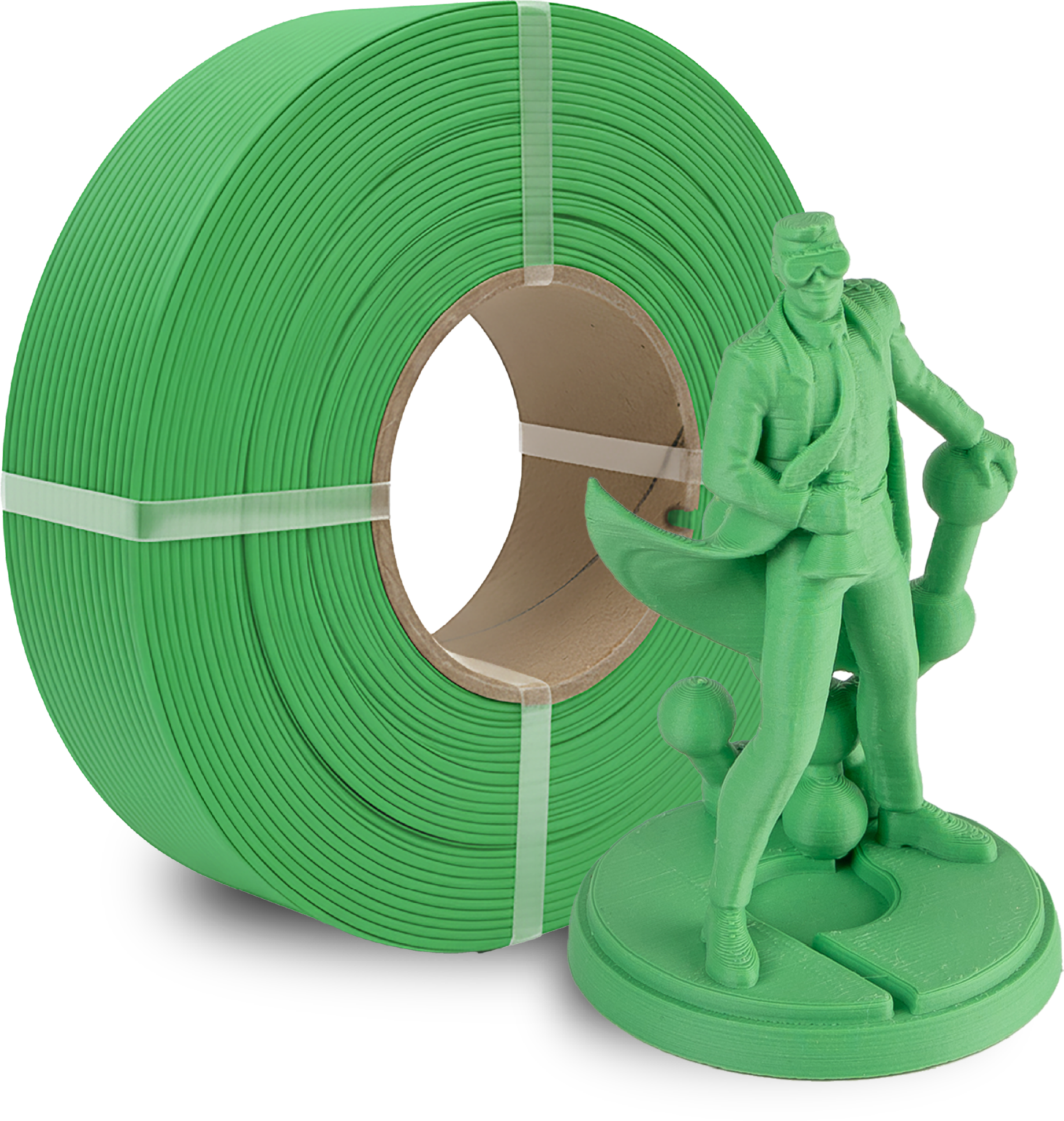 Polymaker Refills består av filamentspoler uten fast spole. De er designet for å brukes på en gjenbrukbar Master Spool. Polymaker tilbyr en egen Polymaker MasterSpool som STL-fil, som du kan skrive ut selv (se under Nedlastinger eller last det ned fra MakerWorld).