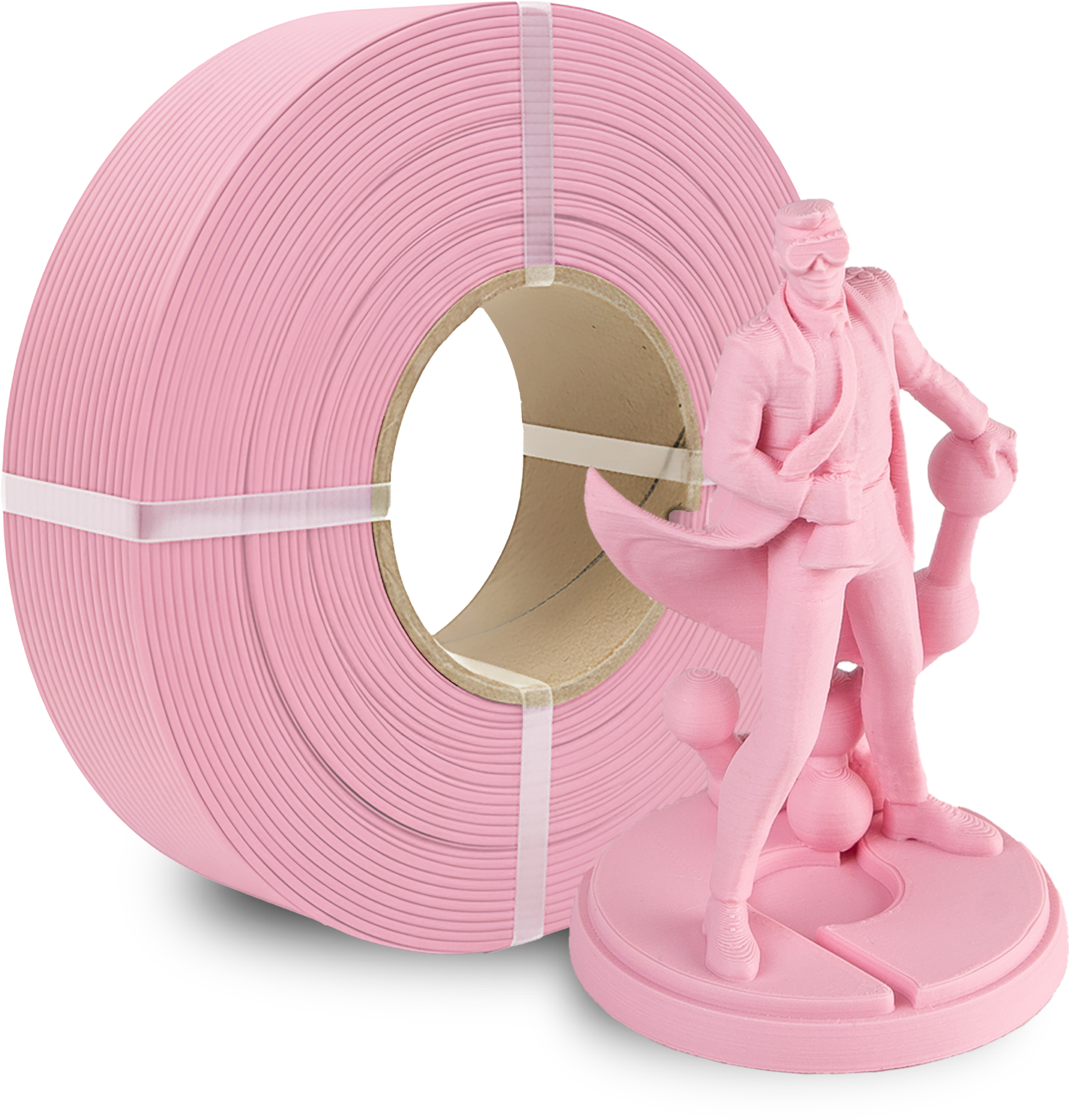 Polymaker Refills består av rent viklet filament uten fast spole. De er designet for å brukes med en gjenbrukbar Master Spool. Polymaker tilbyr en egen Polymaker MasterSpool som STL-fil, som du kan skrive ut selv (se under nedlastinger eller last den ned fra MakerWorld).