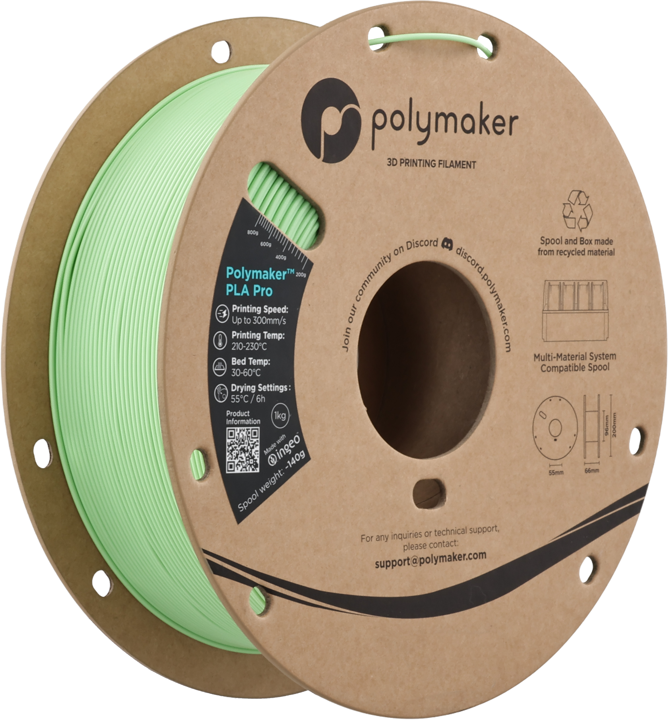 Polymaker PLA Pro Light Green, 1,75 mm / 1000 g