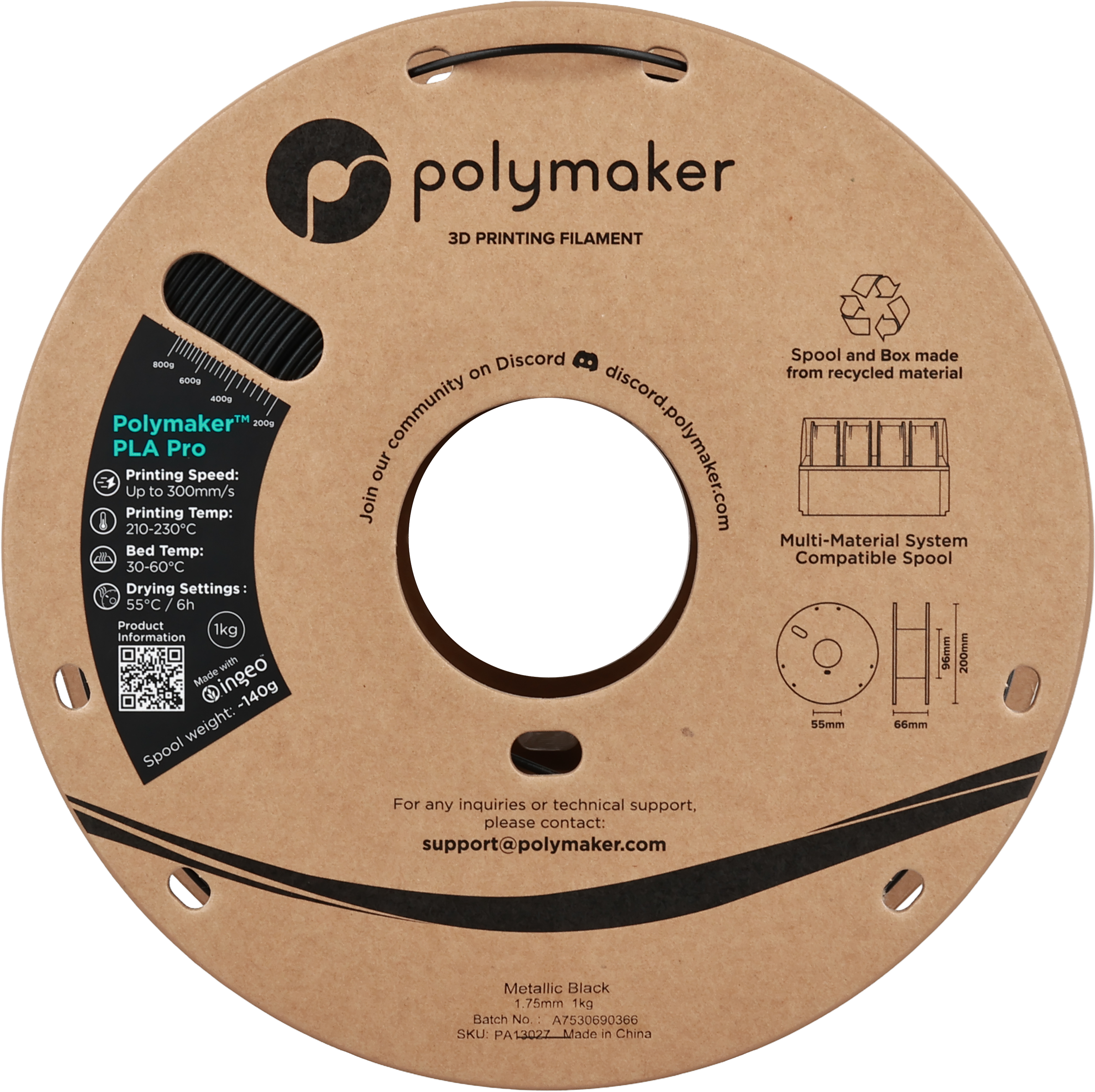 Polymaker PLA Pro Metallic Black, 1,75 mm / 1000 g