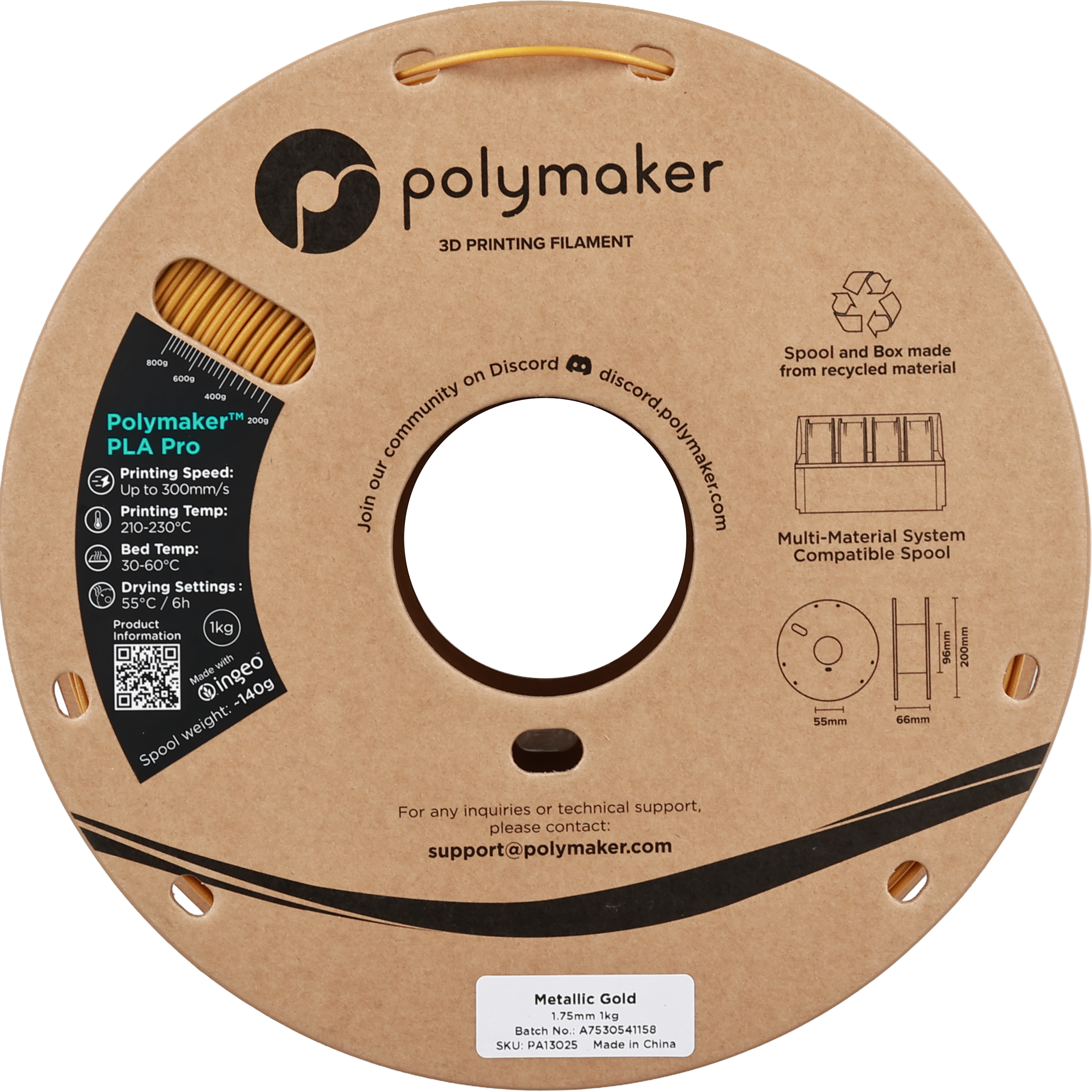 Polymaker PLA Pro Metallic Gold, 1,75 mm / 1000 g