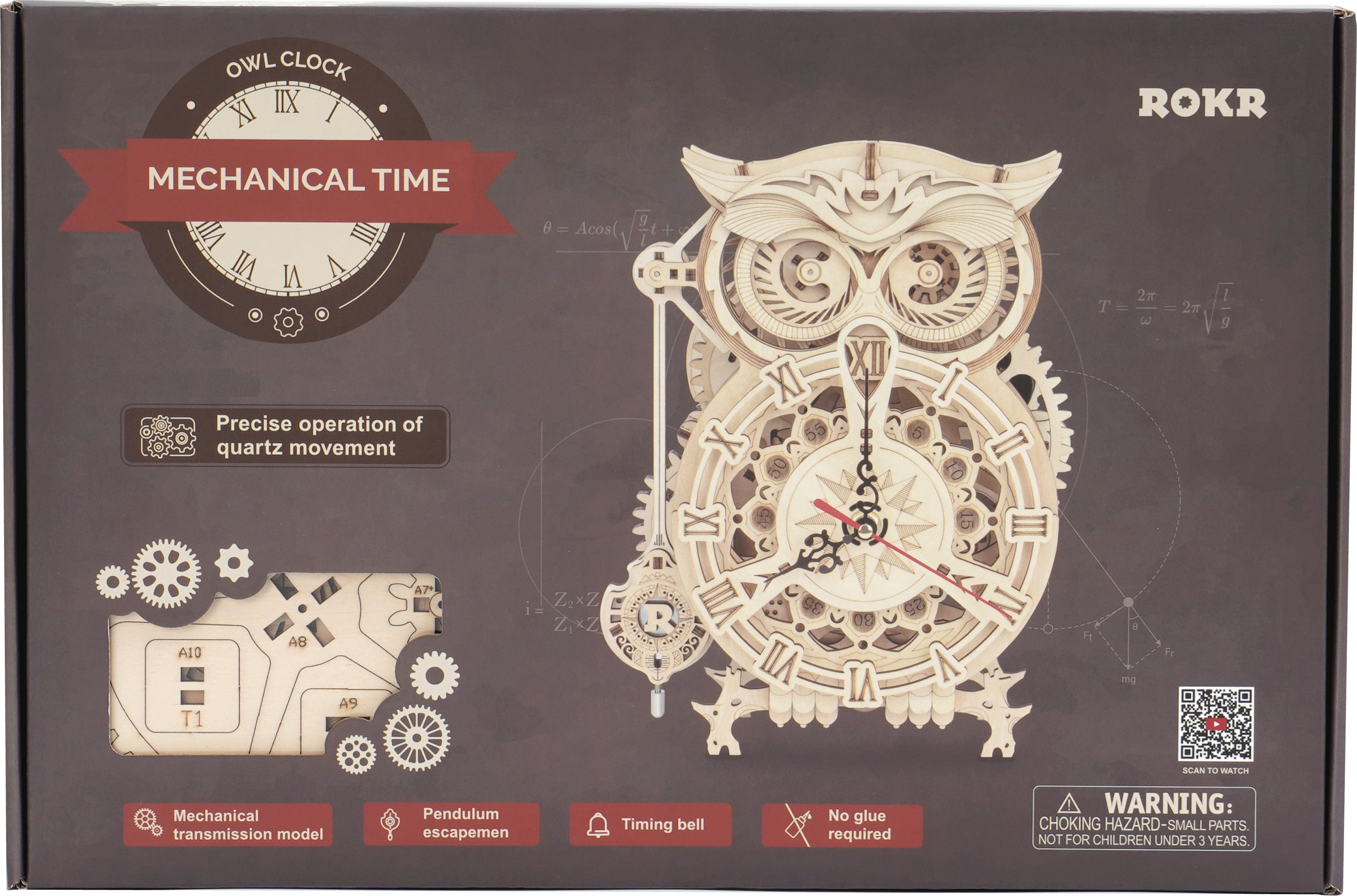 ROKR Owl Clock er et 3D trepuslespill som forvandler seg til en fullt funksjonell klokke – kunstnerisk utskåret, mekanisk åpen og full av personlighet. Fra mange delikate trestykker skapes det en ugle som ikke bare er dekorativ, men også pålitelig måler tiden.