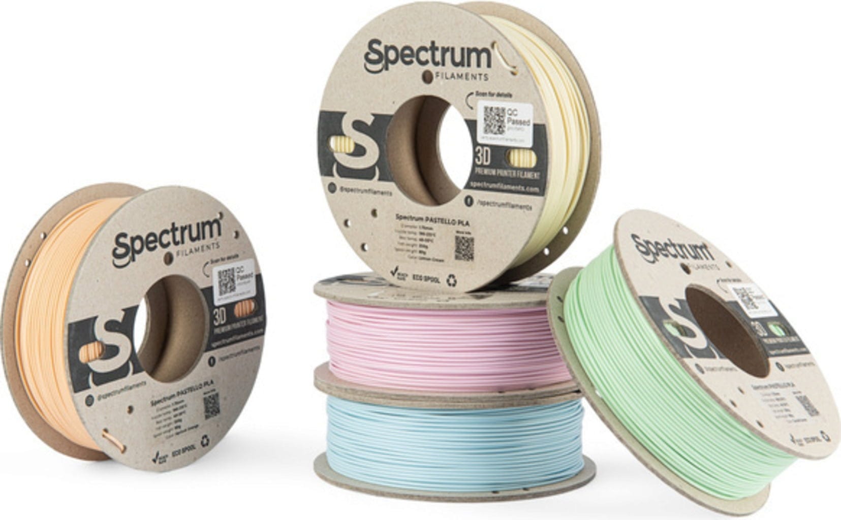 Med Spectrum 5er-Set Pastello PLA får du en perfekt balanse av myke farger og pålitelig utskriftskvalitet. Settet er satt sammen for å gi deg maksimal kreativ frihet – uten at du må kjøpe flere hele spoler av samme fargetone.