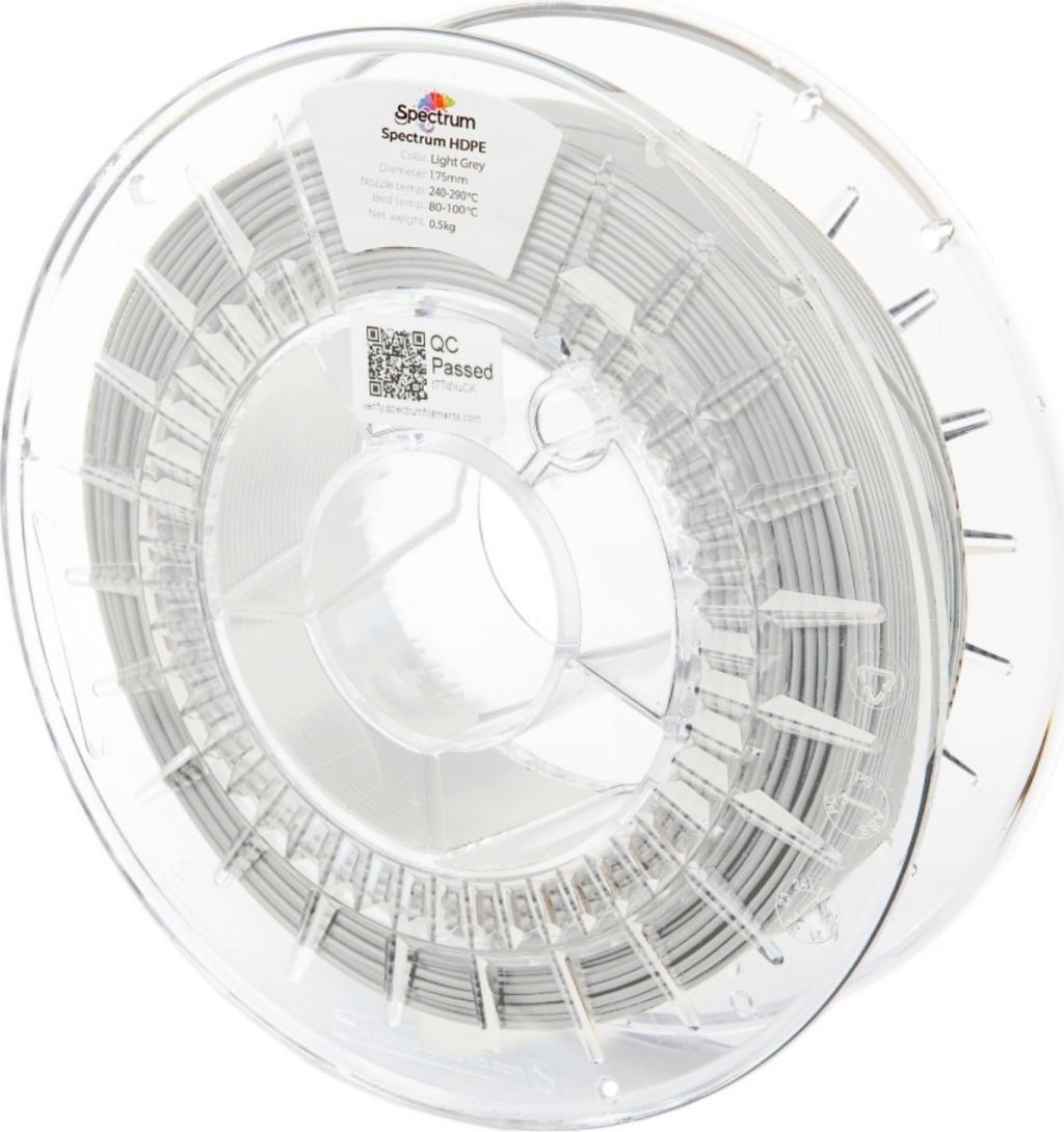 Spectrum HDPE er en av verdens første HDPE-filamenter med en innovativ Low-Warp-formulering. Høydensitets polyetylen er tradisjonelt vanskelig å printe – men Spectrum har tenkt materialet helt på nytt! Resultatet er et teknisk høyytelsesfilament som er ekstremt motstandsdyktig, kjemisk stabil og samtidig overraskende enkelt å bearbeide.