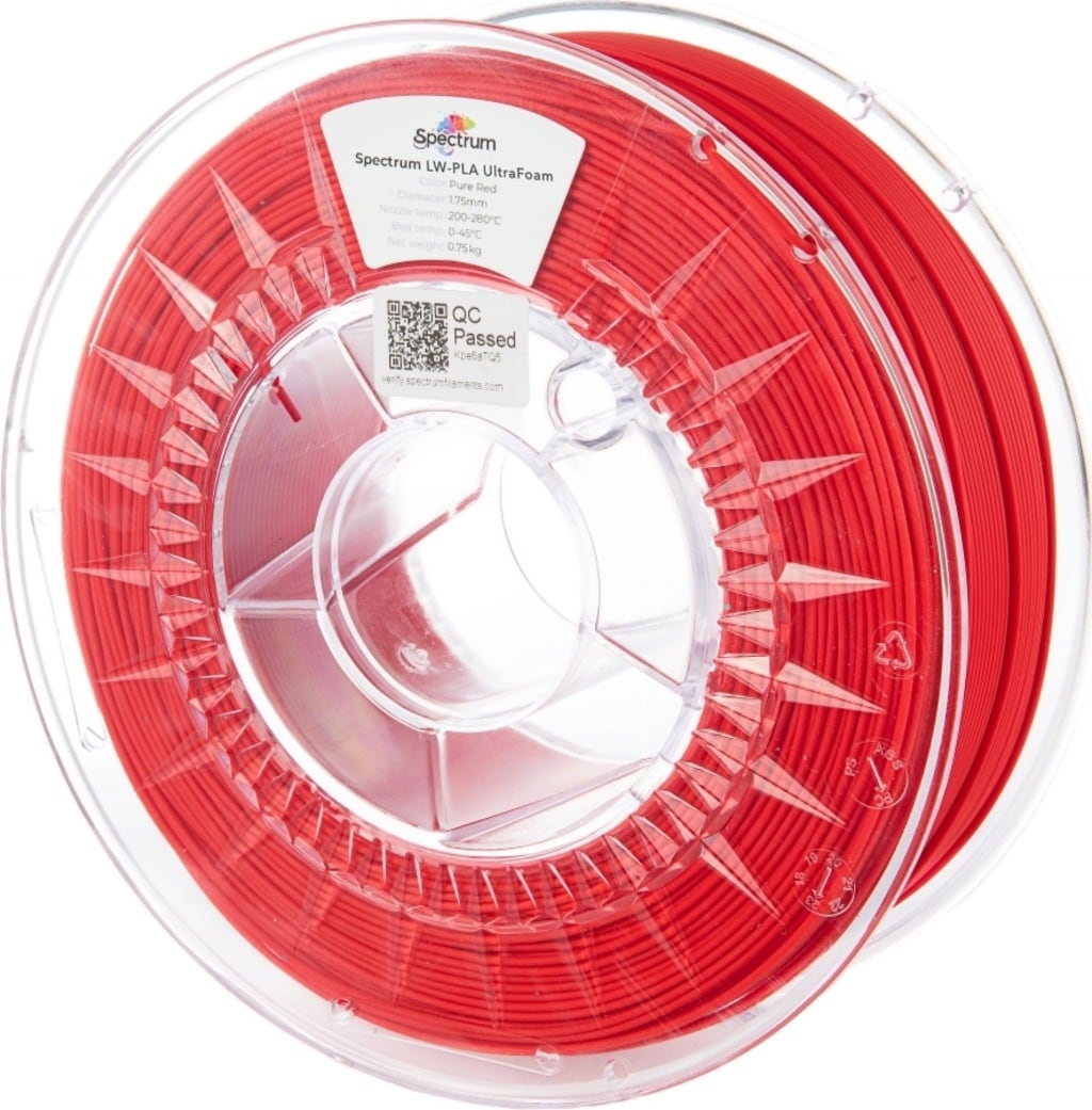 Spectrum LW-PLA UltraFoam er et spesialisert filament basert på Spectrum Premium PLA som ved hjelp av aktiv skumdanningsteknologi muliggjør en betydelig reduksjon av materialvekten. Det er særlig egnet for lettvektskonstruksjoner der mekanisk styrke, lav vekt og ren overflatekvalitet er nødvendig – for eksempel innen modellbygging, UAV-komponenter eller funksjonelle prototyper.