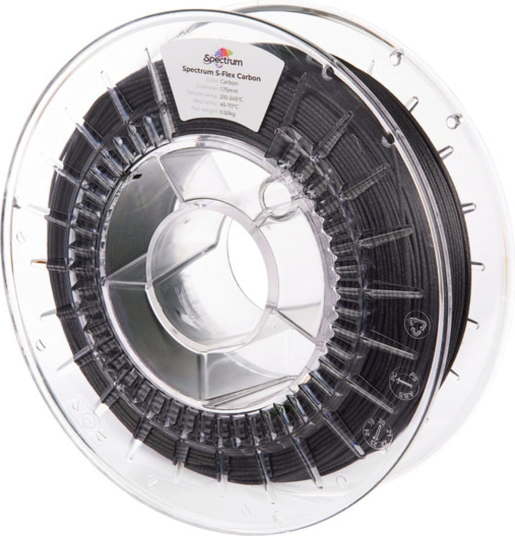 Spectrum S-Flex Carbon er et innovativt hybrid-filament som kombinerer elastisiteten fra klassiske flexmaterialer med den mekaniske forsterkningen av 20 % karbonfiberinnhold. Resultatet er et usedvanlig robust, fleksibelt materiale for tekniske anvendelser med økte krav.