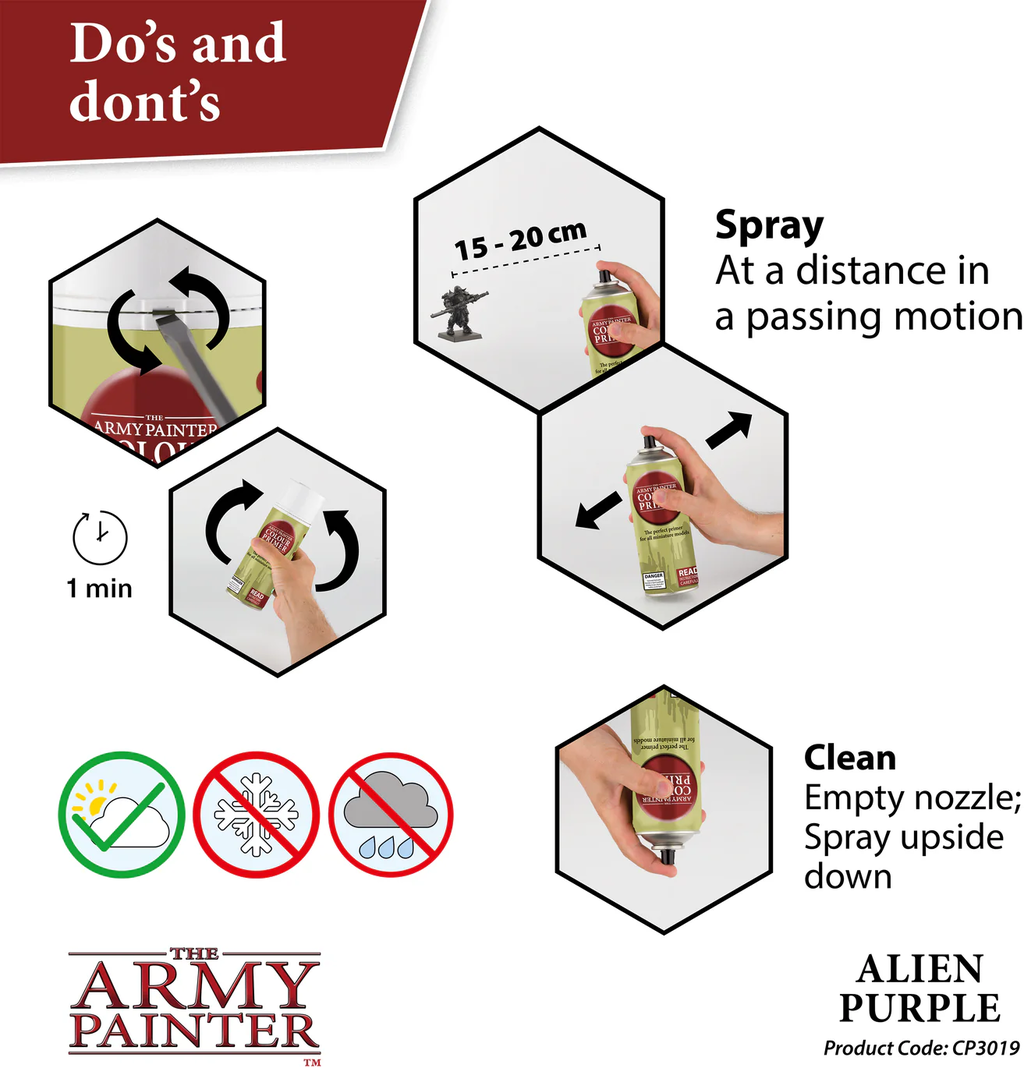 Med Colour Primer fra The Army Painter kan du legge grunnlaget for imponerende miniatyrer og episke hÊrer. Denne spraygrunningen er den raske og enkle mÄten Ä gi modellene dine den ideelle starten fÞr du dypper dem i maling. Enten det er fantasy, sci-fi eller historiske miniatyrer - med Colour Primer kan du forvandle grÄ plastfigurer til livlige kunstverk og spare mye tid i prosessen.