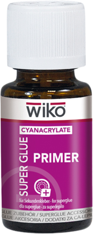 WIKO Super Glue Primer er et spesialutviklet bindingsmiddel som øker overflateenergien på plaststoffer som er vanskelige å lime, og dermed forbedrer effekten av CA-lim betydelig. Forbehandlingen gir en stabil og varig forbindelse selv for materialer som normalt sett er lite eller ikke i det hele tatt limbare.